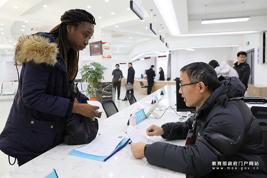 一名留學生在一站式學生事務與發展中心辦理簽證事務。(楊雨/攝)