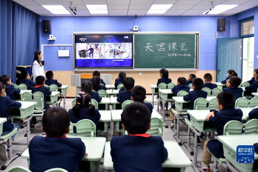 1/09月21日,在河北省秦皇島市海港區(qū)燕秀里小學,學生收看“天宮課堂”第四課。(新華社發(fā) 曹建雄/攝)
