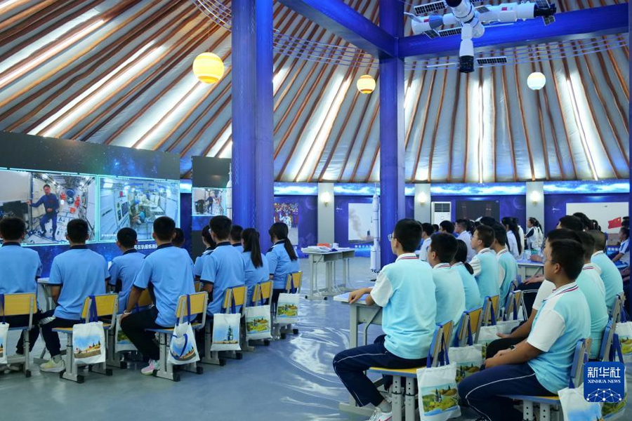 1/09月21日,在內(nèi)蒙古阿拉善盟額濟納旗,學生收看“天宮課堂”。(新華社發(fā) 敖琪/攝)